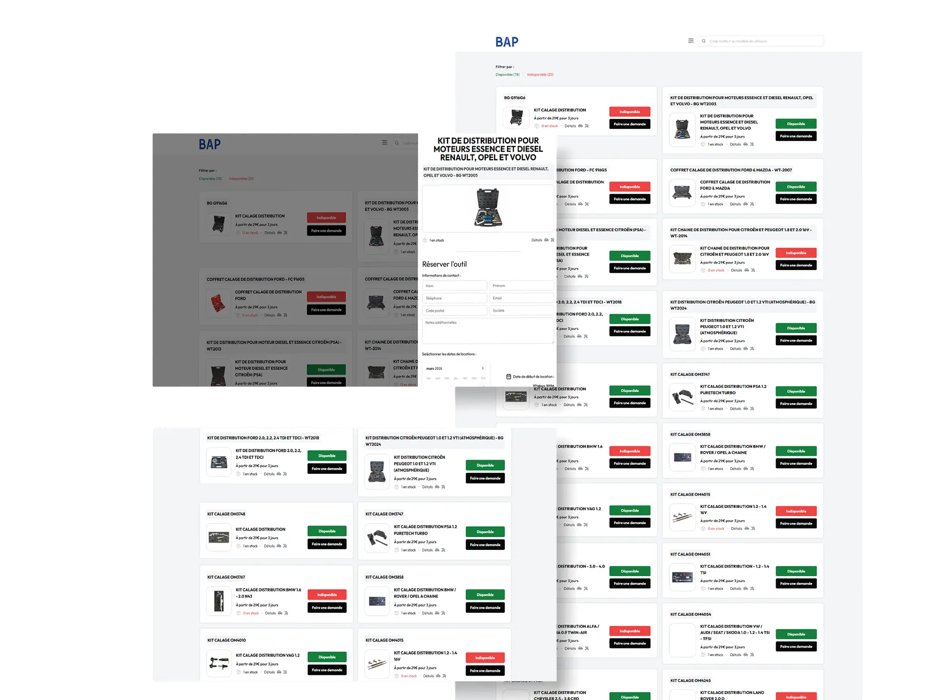 Permettre à BAP France de passer d’un mode de gestion traditionnel (Excel) vers une plateforme numérique complète, afin de fluidifier les demandes de location d’outillage, d’optimiser le suivi des réservations et de donner aux clients finaux un accès en ligne simple et performant.