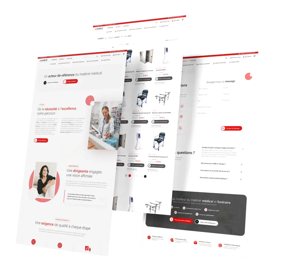 Un écosystème e-commerce sur-mesure qui structure et modernise l’activité de SoMedical, en offrant simplicité, autonomie et transparence. Une véritable plateforme pensée pour les professionnels du secteur médical et funéraire.