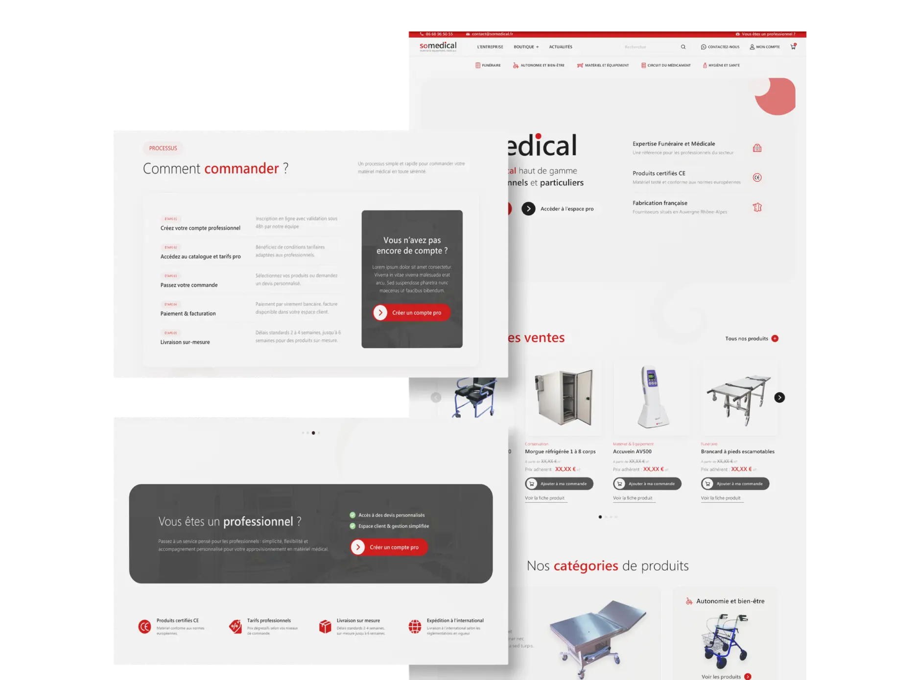Le site SoMedical a été développé sous WordPress / WooCommerce avec un accent sur la simplicité de gestion et la fluidité du parcours professionnel.